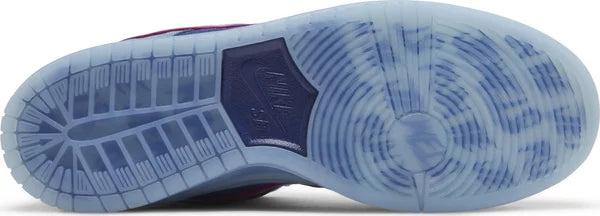 The Run The Jewels x Nike Dunk Low SB ‘4/20’ presents a sneaker collaboration centered around the hip-hop duo composed of Killer Mike and El-P. The low-top sports a suede upper in varying shades of blue, contrasted by a textured nubuck Swoosh in hot pink. Embroidered on the back tab, a Nike wordmark in metallic gold matches the woven Nike SB that decorates the stuffed tongue. The sneaker rides on a semi-translucent rubber cupsole, featuring an all-over ‘Run The Jewels’ print underfoot.